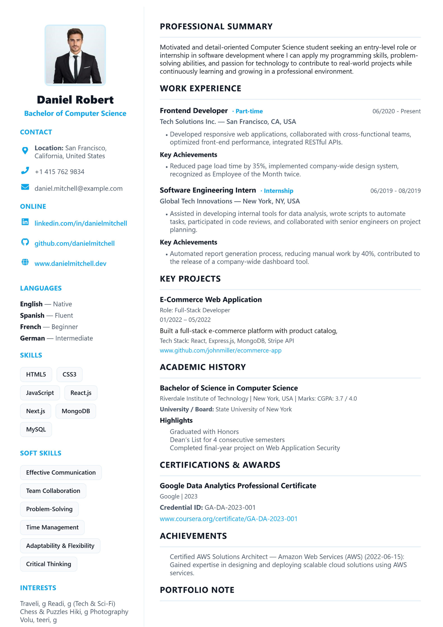 - ATS-Friendly Templates: Clean semantic layouts with clear headings so ATS can parse your resume reliably.